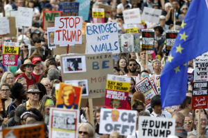 - “We’re here to show that Trump’s policies on refugees and minorities don’t reflect our values,” said one protester from Birmingham.